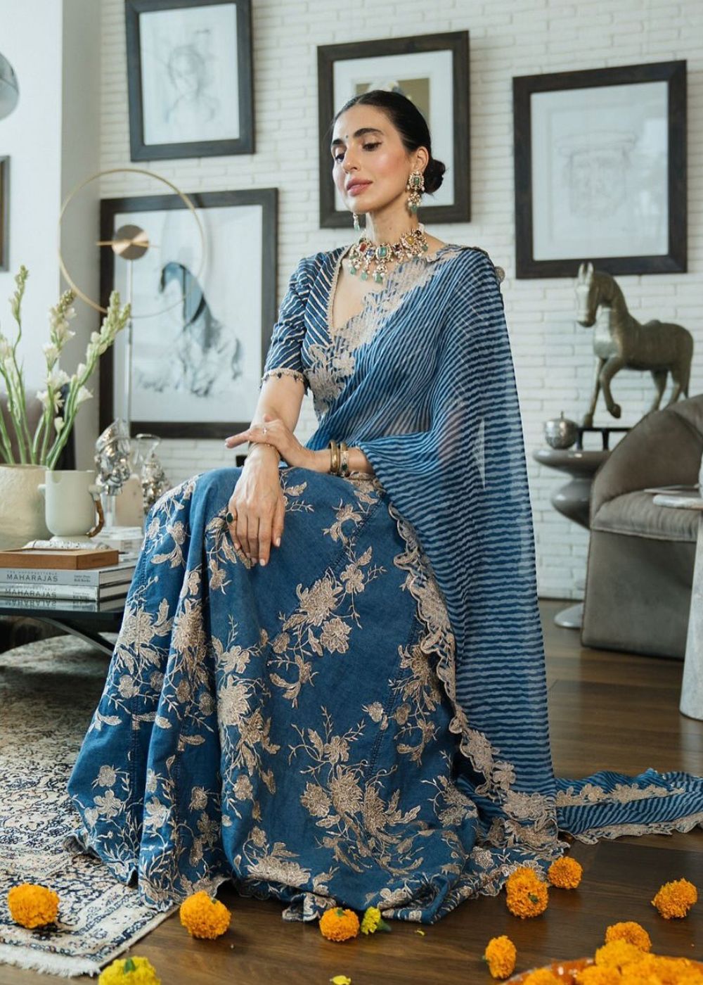 Chose this deep indigo lehenga for a destination sangeet and it turned heads all night. Can’t get over how rich and detailed the embroidery is!