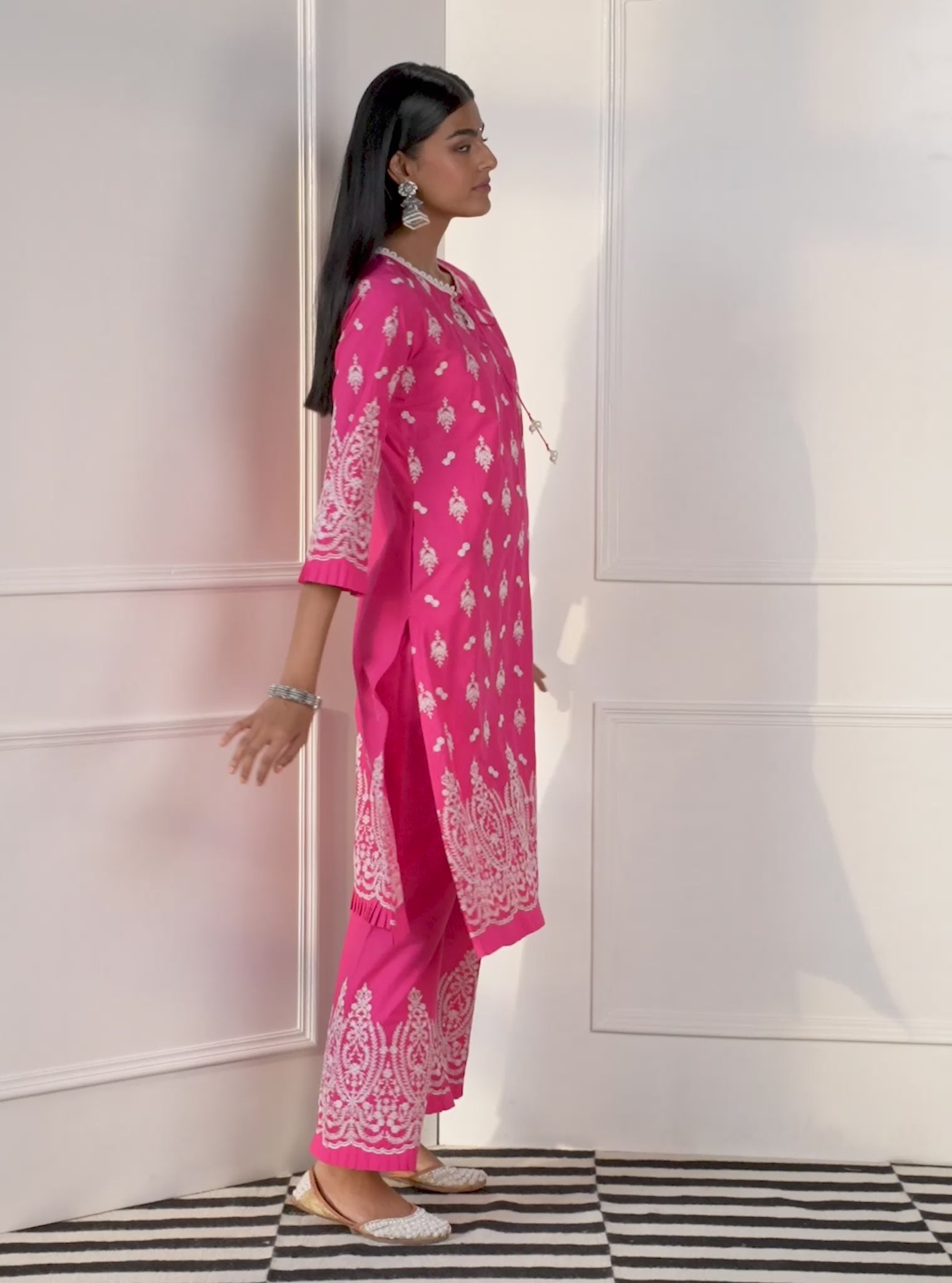 Mulmul Cotton Asteria Pink Kurta With Asteria Pink Palazzo
