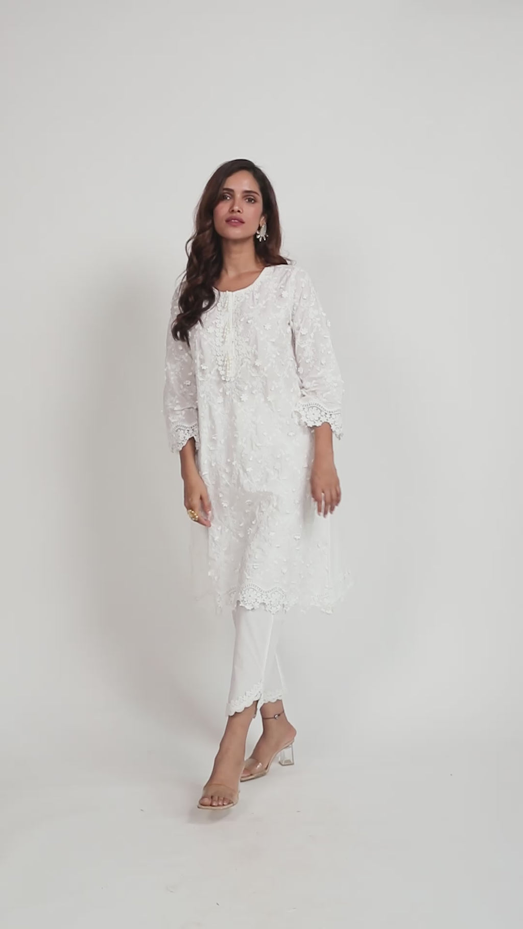 Mulmul Cotton BayBreeze White Kurta With Rounded Hem Pyajama White