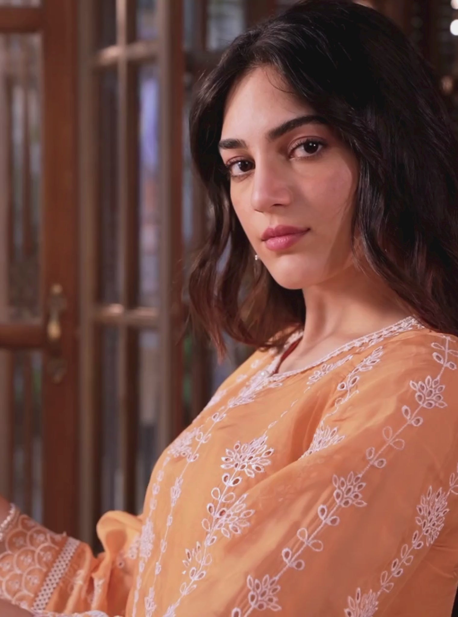 Mulmul Organza Nisrina Orange Kurta With Mulmul Cotton Nisrina Orange Pant